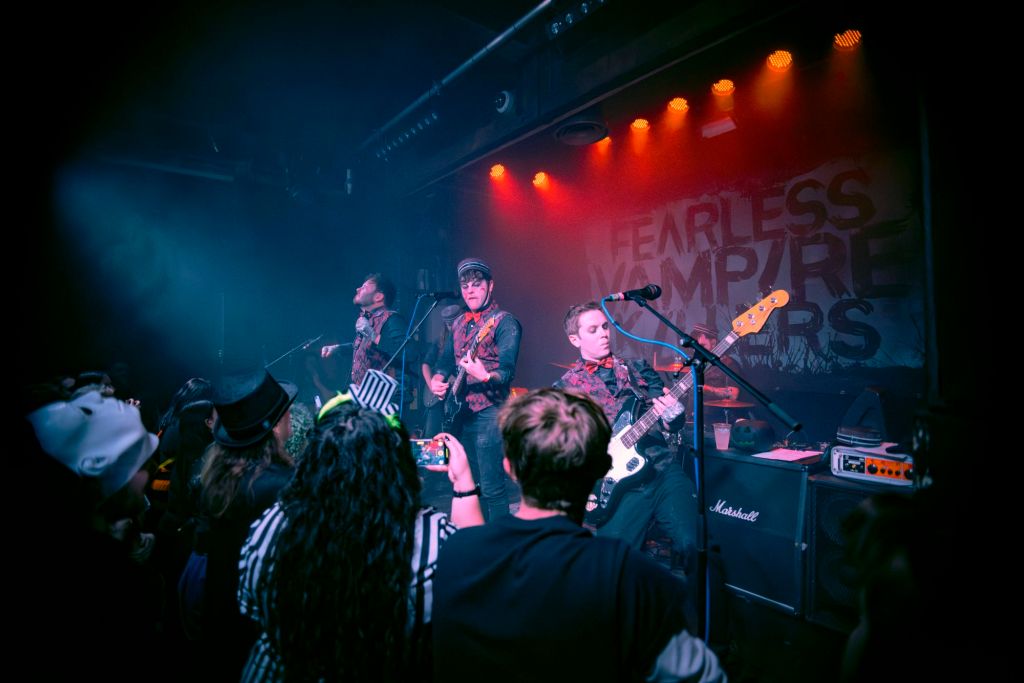 This is because Fearless Vampire Killers are back in the city. Headlining their very own Halloween party for a hometown show to remember. Fans have travelled from throughout the UK, booking hotels, just to catch this one off show and the excitement was palpable.