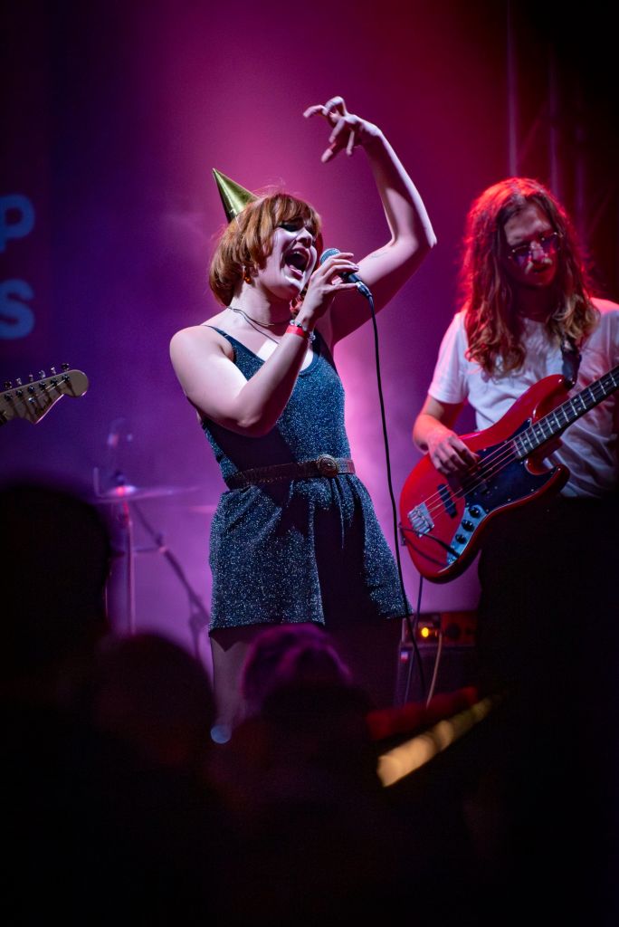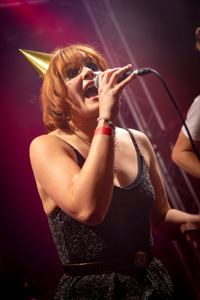 The band — fronted by the magnetic Helena Lewis — packed the room with friends, fans and a few curious first-timers, turning the compact, columned venue into a pit of singalongs, happiness and genuine celebration. The crowd, wearing come party hats and throwing balloons in the air, were all ready to congratulate the band on their huge success.