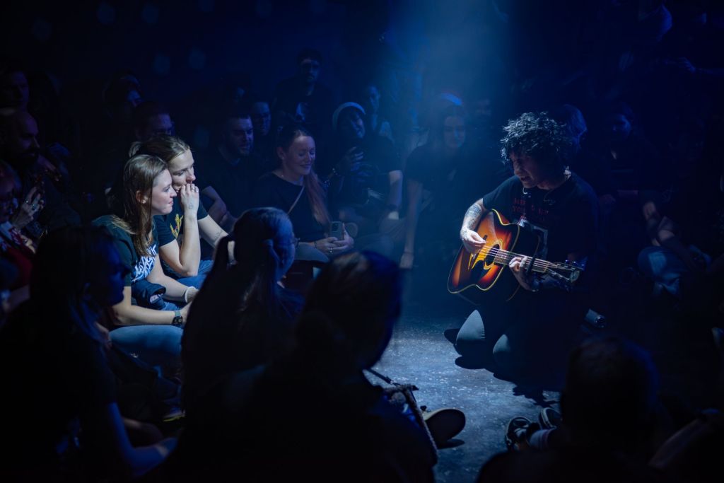 At one point in the night, Steven Battelle stepped off the stage with his guitar and nestled in the middle of the crowd, with everyone sitting on the floor circling him, and he played an acoustic version of “Lost and Found Balance”. The song was extended due to Steven talking between verses and the choruses, telling stories, joking and having the crowd smiling and laughing. It was a beautiful thing to witness, feeling the warmth and love from the fandom.