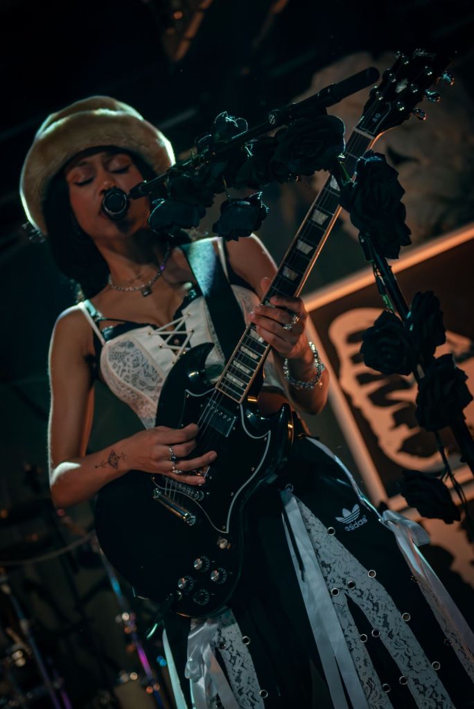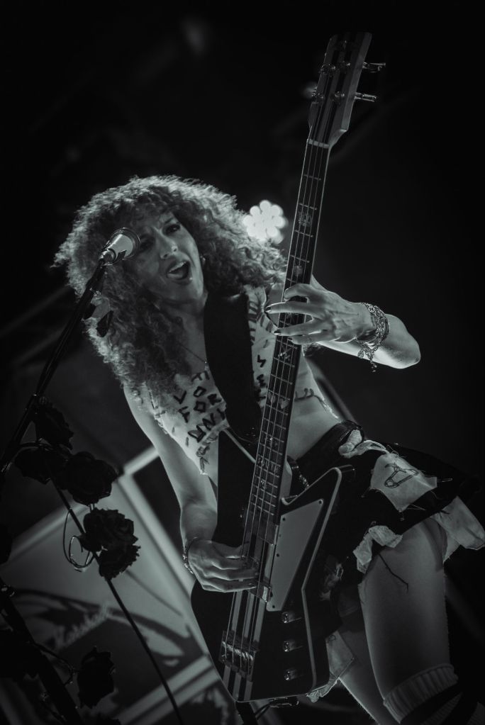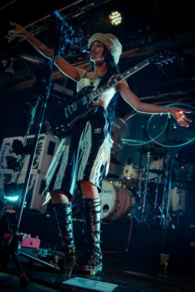 Amy Love’s stage presence was commanding throughout, switching effortlessly between soaring vocals, rhythmic playing, and moments of raw intensity. Georgia South, meanwhile, held together the performance with thunderous basslines, often stepping forward to engage directly with the audience. Together, their chemistry was undeniable, a reflection of years spent developing not just their sound but their shared artistic vision.