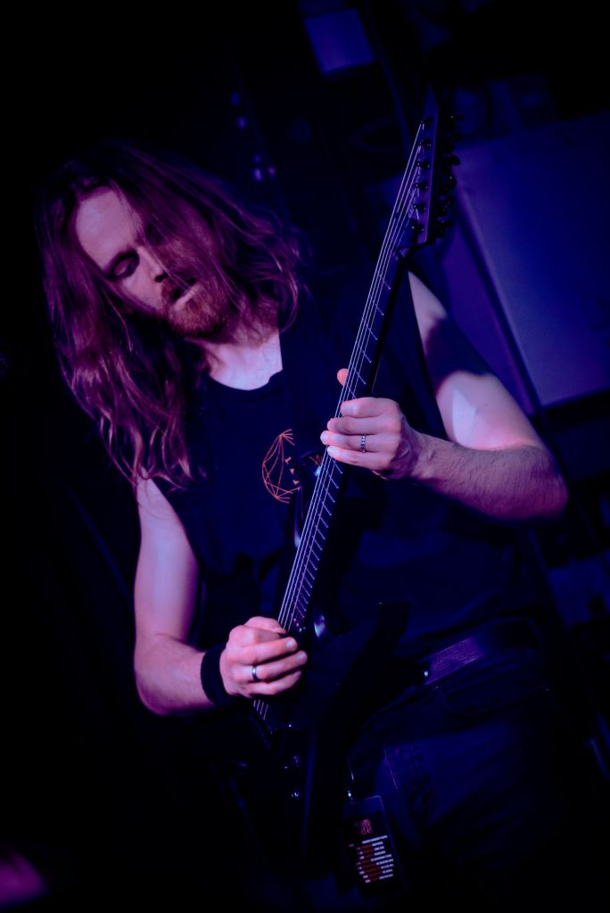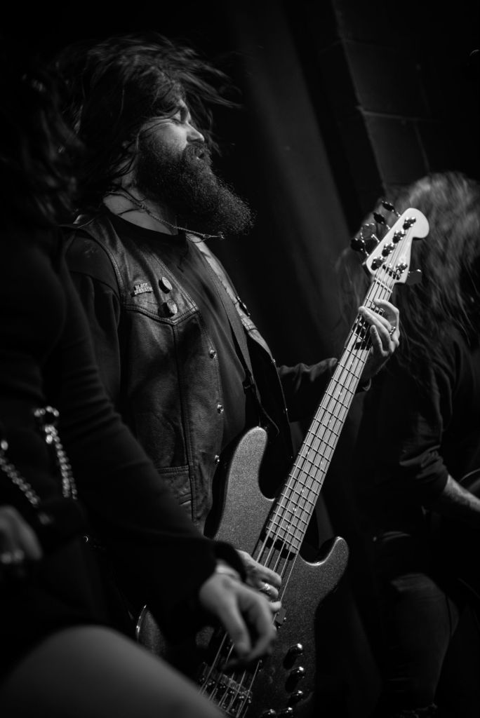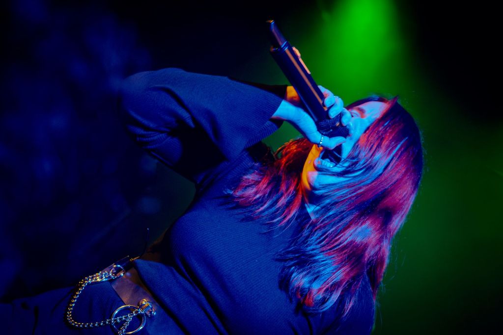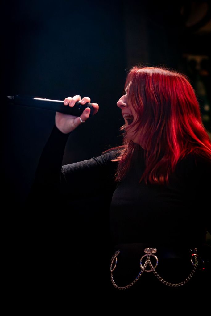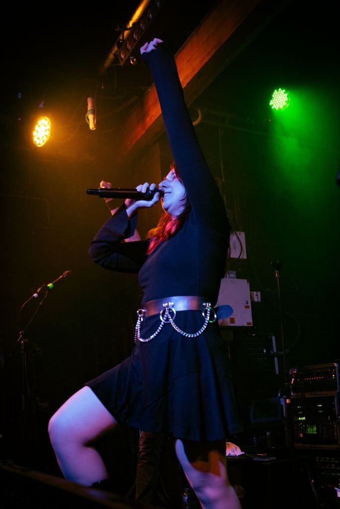 At the centre of it all was Justine Jones, whose commanding stage presence anchored the performance. Switching between guttural screams and sharper, rhythmic delivery, she drove each song forward with intensity. Sammy Urwin complemented this with crushing guitar work, often stepping forward to share vocal duties, adding another layer to the band’s already dense sound. Behind them, David’s guitar textures, Nathan’s heavy bass lines, and Casey’s precise, thunderous drumming combined to create a wall of sound that filled the compact venue.